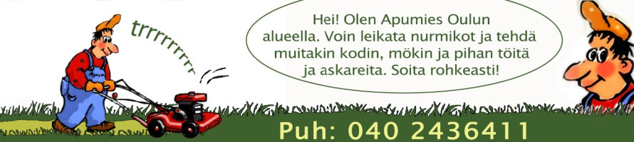 Toiminta-alue: Oulu, Kempele, Liminka, Lumijoki, Oulunsalo, Hailuoto, Tyrnävä, Kiiminki, Ylikiiminki, Haukipudas, Ii, Yli-Ii, Kuivaniemi, Simo, myös kauempana sopimuksen mukaan. Alueen apumiespalvelu, puutarhuri, omakotitalkkari, mökkitalkkari, pihatalkkari, talonmiespalvelu.